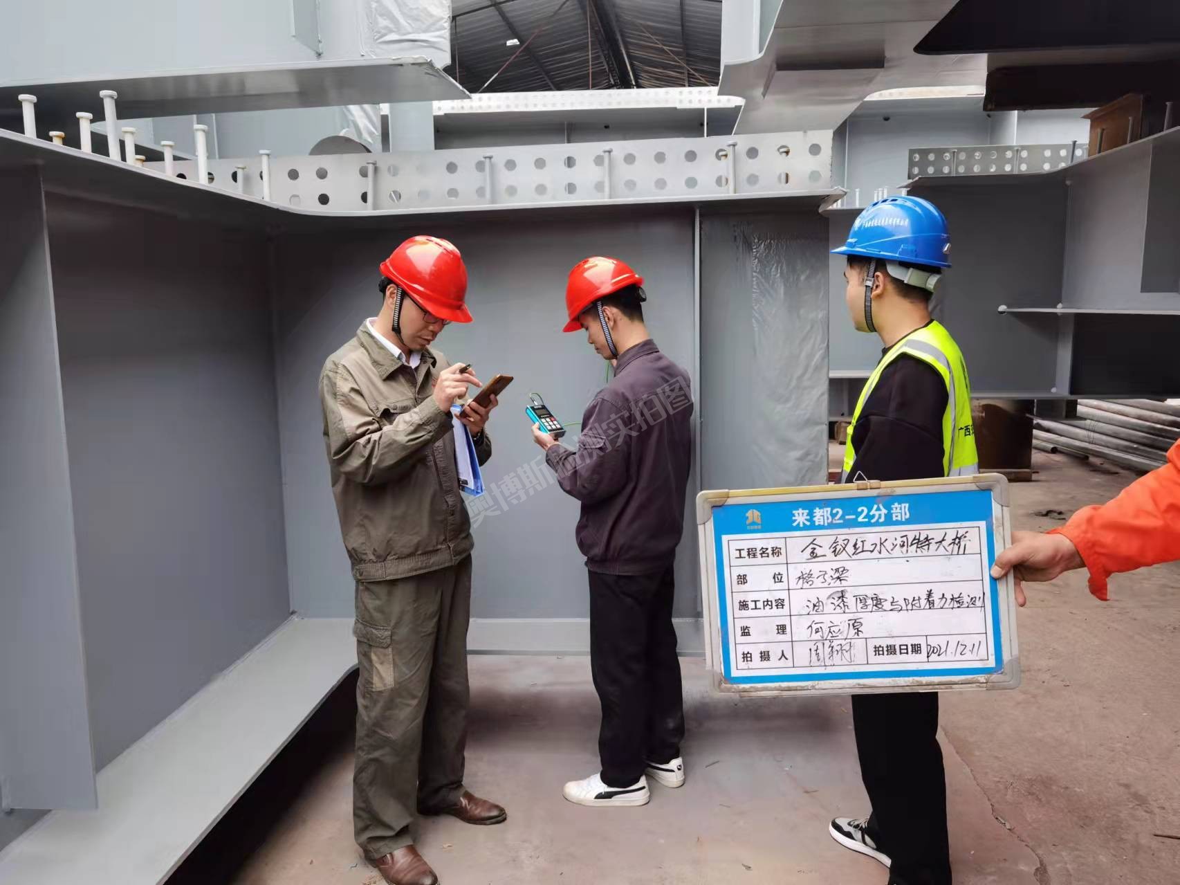 廣西金釵紅水河特大橋格子梁油漆厚度與附著力檢測